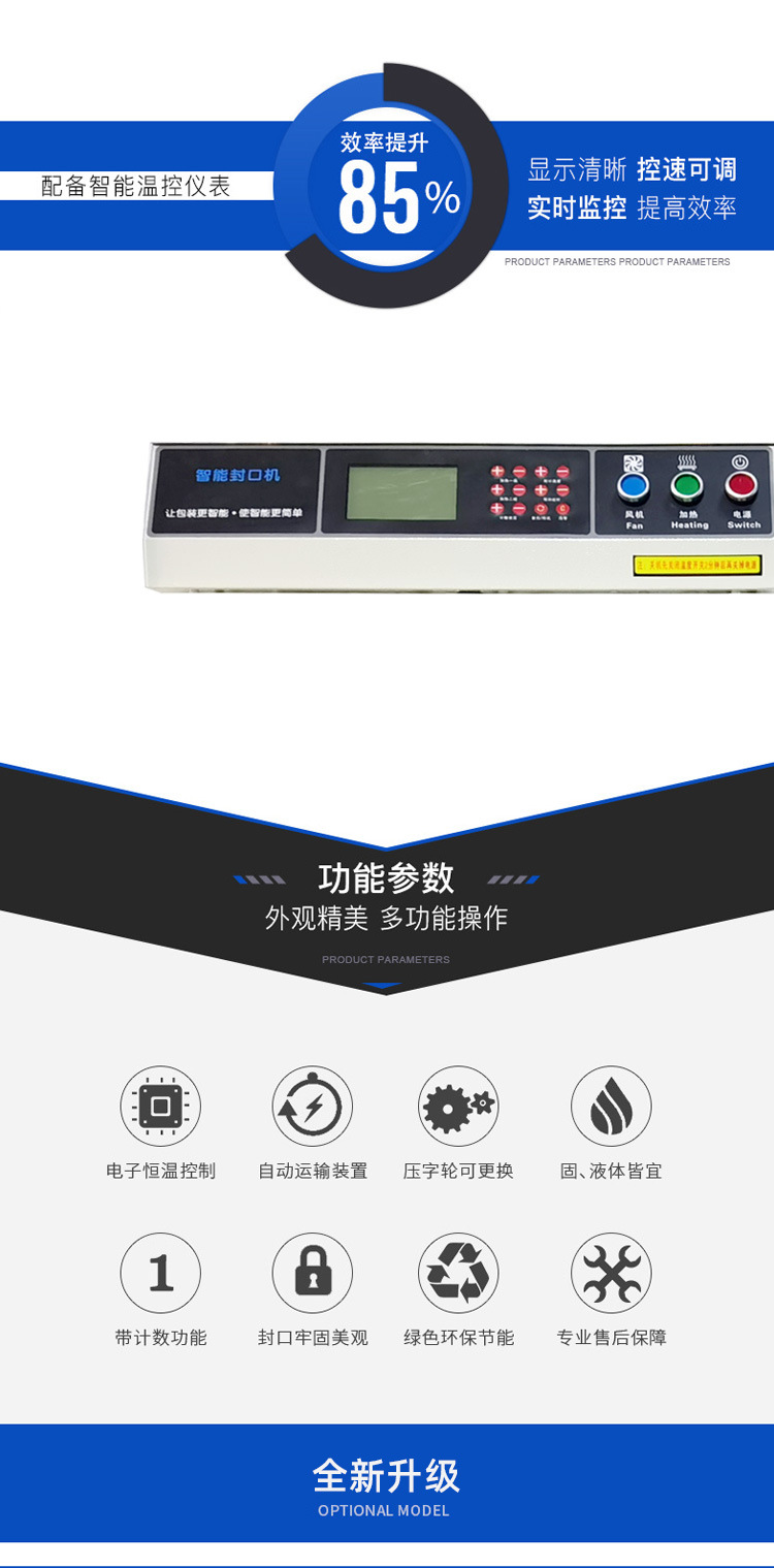 连续式封口机的最大优势在于其高效的封口能力,可以在短时间内完成大量包装材料的封口