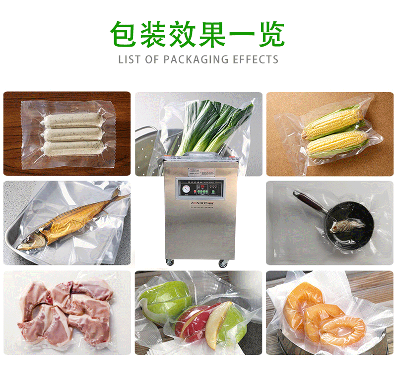 对于农产品生产者来说,无论是干燥的豆类、谷物,还是湿润的蔬菜、水果,干湿两用真空包装机都能给予理想的包装效果。像刚采摘的水嫩黄瓜和晒干的豆角,都能通过它实现有效的保鲜包装。