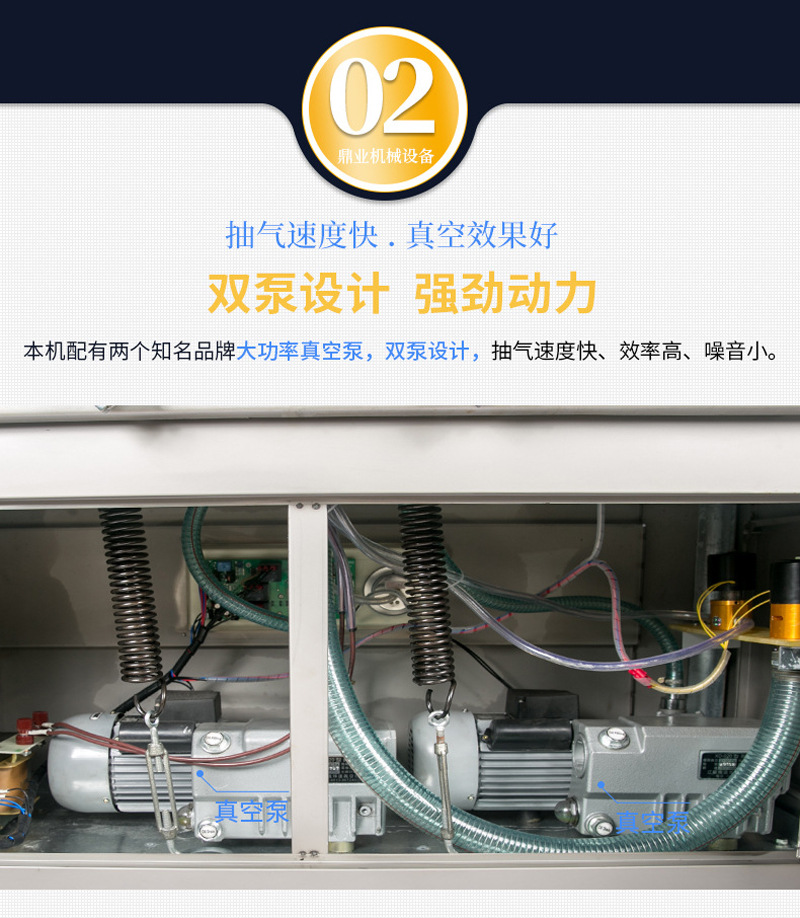 - 真空度高:采用优质真空泵,能够快速有效地抽出空气,达到较高的真空度,确保包装质量。