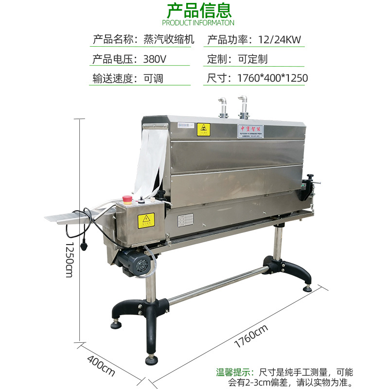 - 高效收缩:蒸汽收缩机能够快速产生高温蒸汽,使包装材料在短时间内完成收缩,提高生产效率。