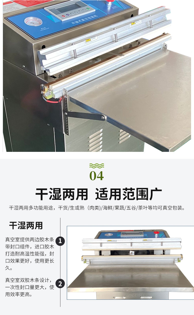 - 对于一些体积较大、形状不规则的物品,气动外抽真空包装机能够轻松应对,实现高效包装。