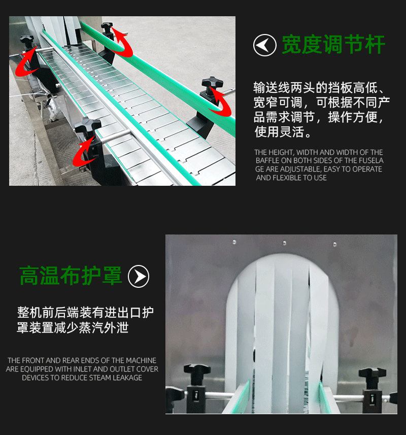 蒸汽收缩机是新一代收缩膜机,设计精巧, 外型美观,不占空间,移动,安装迅速快捷,超大范围的调节,使其可适用于各种输送带和滑道。