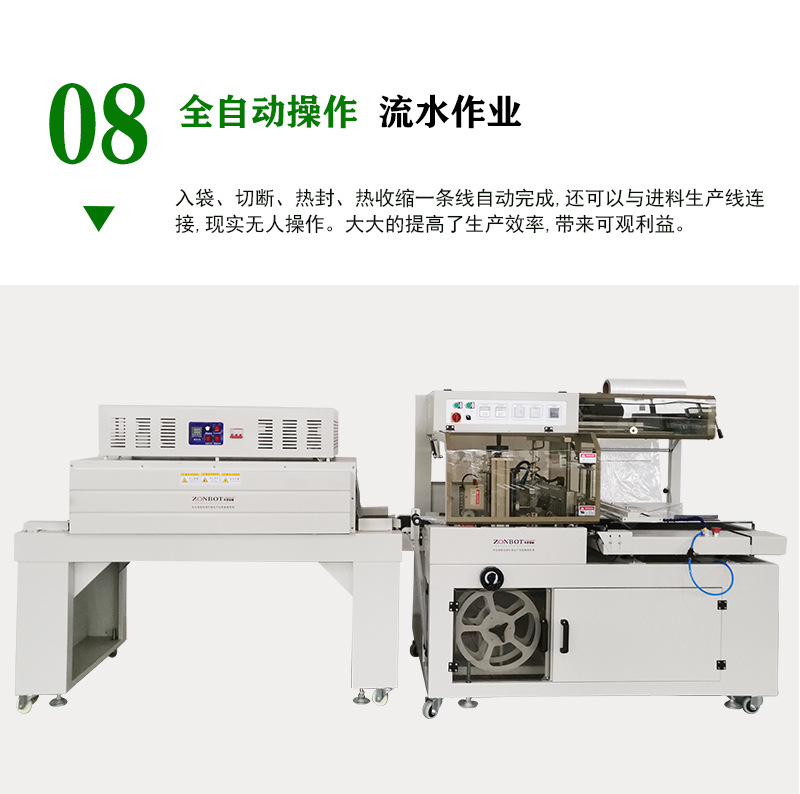 - 智能参数调节:智能控制系统能根据产品尺寸、形状和包装要求自动调整封切和收缩参数。如包装不同大小产品时,自动调节封切刀位置和收缩通道温度,保证每个产品包装合适。
