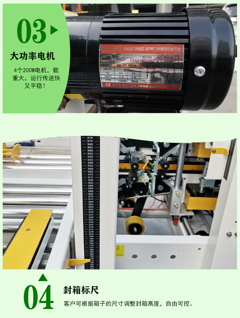 - 多行业适用:在物流、电商、食品、医药、电子、日化等众多行业都能发挥重要作用,无论是对产品包装的牢固性、卫生性有严格要求的食品医药行业,还是对包装效率和外观有较高标准的电子电商行业,都能很好地满足其封箱需求,具有很强的通用性和普适性