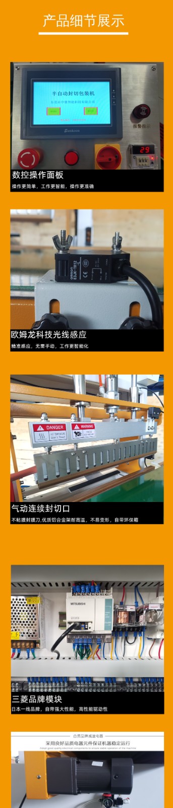本封口机是根据国内外先进的机型基础上,重新设计制造而成,还有立卧两用封口之功能。适用于所有塑料薄膜的封口及制袋,是食品厂、化妆品厂、药厂等单位的理想封口设备,可连续运转,还可根据用户需要打出日期、批号等。适用于流水线工作。适用范围 连续封口机适用于所有塑料薄膜的封口及制袋,包括医药、农药、食品、日化、润滑油等行业的铝箔袋,塑料袋,复合袋等材料的理想封口,它是食品厂、化妆品厂、药厂等单位的理想封口设备连续式封切热收缩包装机 日化用品封膜打包机 现货充足 适用范围: