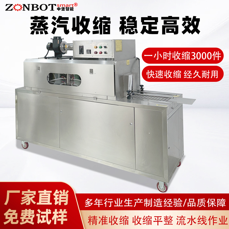 设备采用内嵌式蒸汽发生模块,摒弃传统分体式设备的外置蒸汽发生器设计,将蒸汽制备、输送、收缩环节高度集成在同一主机框架内。这种设计不仅大幅压缩设备整体占地面积(相比分体式方案节省 30%-50% 空间),还省去了蒸汽管道的铺设与密封工序,从根源上降低蒸汽泄漏风险,适配狭窄车间、流水线嵌入式工位等多种布局场景。
