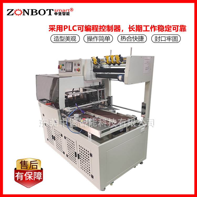 封切机是全自动无人化操作的包装机,广泛用于批量生产包装的流水作业,工作效率高,自动送膜打孔,自动套膜封切,自动卷取废料;只需手动调节导膜系统以及手动调节进料输送平台,适用不同宽度及高度的产品