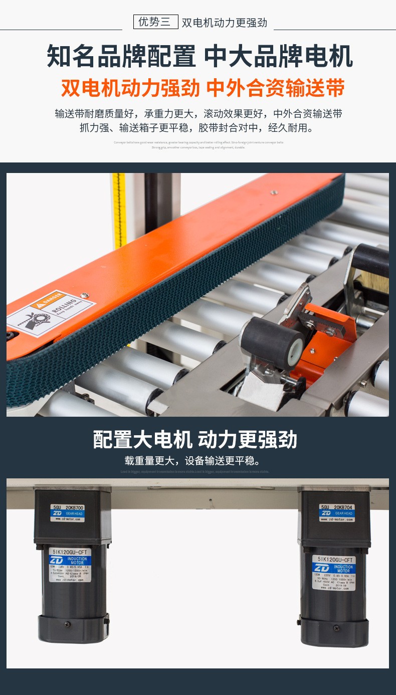 封箱机主要适用于纸箱的封箱包装,既可单机作业,也可与流水线配套使用,它可单箱作业,也可与纸箱成型开箱机、装箱机、贴标机、捆包机、栈板堆叠机、输送机等设备配套成包装流水线使用,为包装流水线作业必须的设备。