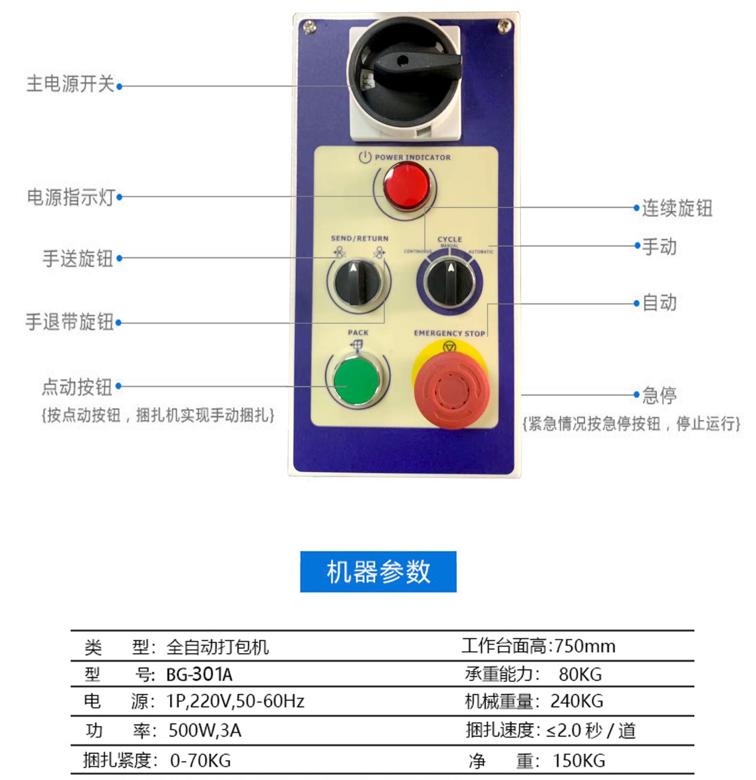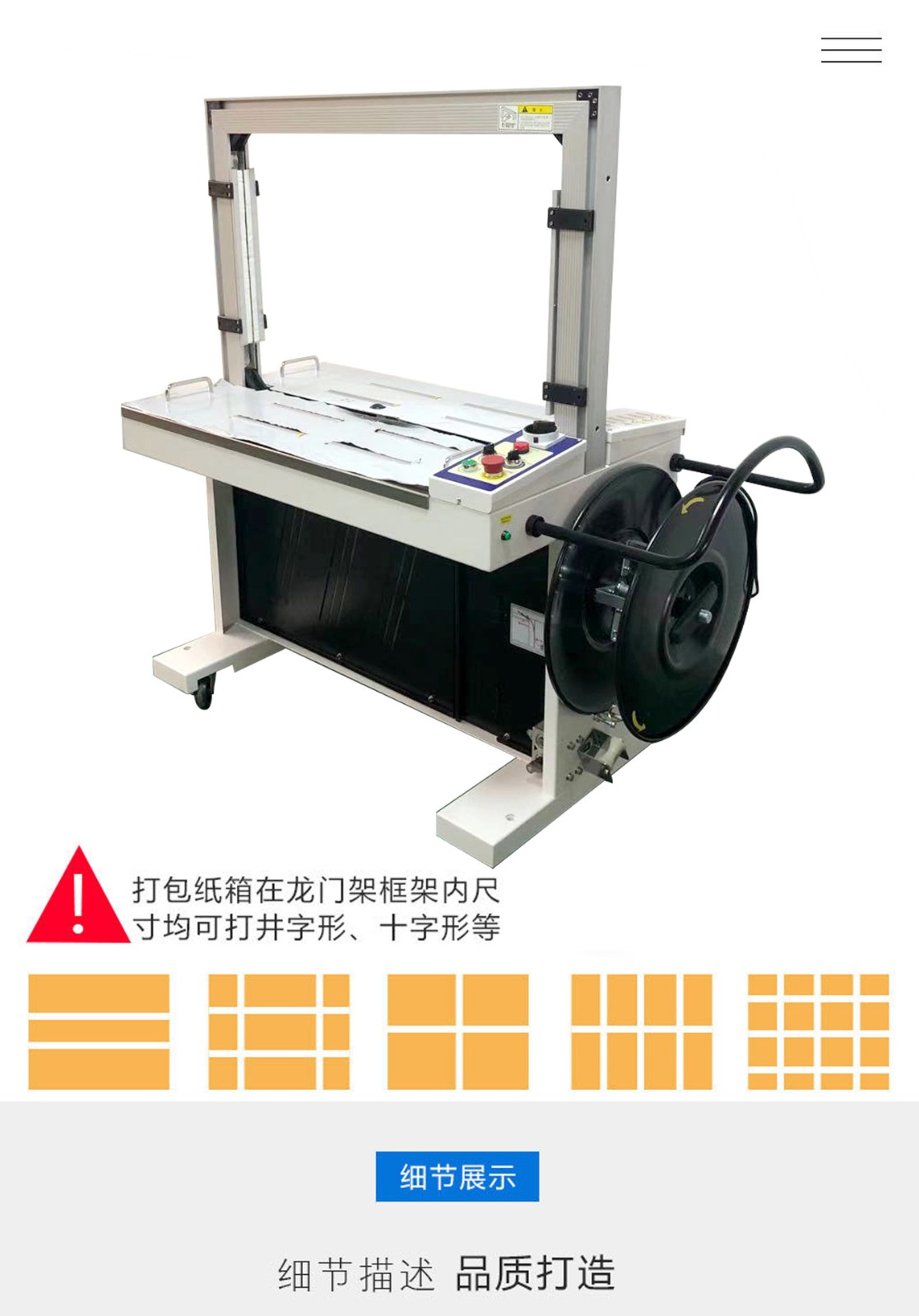 打包机的功能是使用捆扎带缠绕产品或包装件,然后收紧并将两端通过热效应熔融或使用包扣等材料连接,以保证包件在运输、贮存中不因捆扎不牢而散落,同时应捆扎整齐美观。
